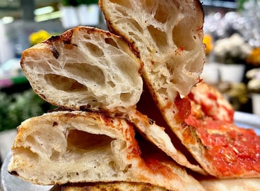 We specialise in high-hydration, slow-fermented dough, creating a light, airy crust that is full of flavour and easy to enjoy for everyone.