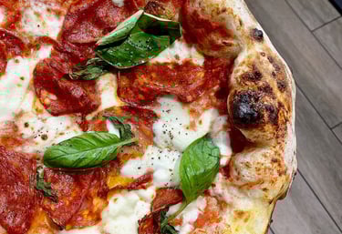 Tomato sauce, fior di latte, hot salame, fresh basil, extra virgin olive oil