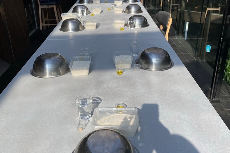 Whether you’re a complete beginner or a seasoned home cook, our classes are tailored to help you master the foundational techniques that make truly great pizza. We’ll start the experience with a warm welcome to set the mood and get everyone chatting. Then, it’s time to roll up your sleeves!